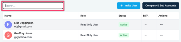 With numerous users in the Dashboard, a search can quickly find a single user.